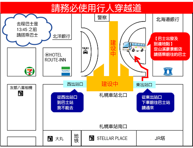 ※前往飯店的話,請在13:45前到達札幌車站北口。