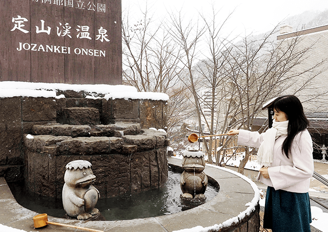 河童家族的祈願手湯/開車約3分鐘。定山溪的歡迎塔