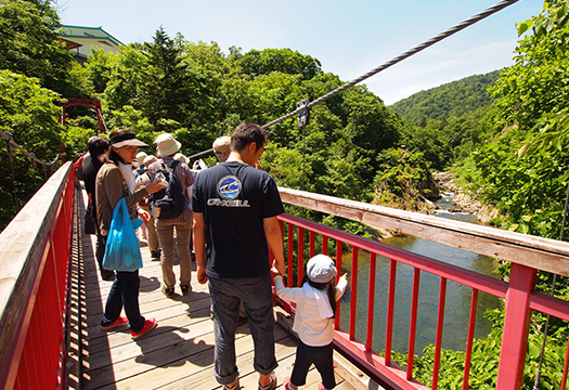 從鮮紅的二見吊橋可眺望“二見巖”和流傳著河童傳說的“河童淵”,通往自然散步路“二見定山之道”。