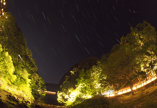 定山溪的溫泉街和自然被彩燈和光雕投影點綴的活動。可以欣賞夢幻的景色。